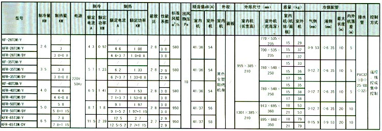 注: 1、機組能力測試條件:制冷35℃DB/24℃WB(室外),27℃DB/19℃WB(室內),制熱7℃DB/6℃WB(室外),20℃DB/15℃WB(室內)冷媒配管等效長度:5米,落差0米。 2、本樣本中的風量為在1OPa下測得數值,靜壓值為常規產品的最大靜壓,實際安裝因出風口靜壓不同,風量有所變化,詳見技術手冊或說明書。 3、本樣本中所載運轉噪音為半消音室中測試的數值,側出風機組的標稱噪單為不接風管的最大噪音。在實際安裝狀態下,因受周圍背景噪音的影響,一般要與本樣本的記載值有少許差異。